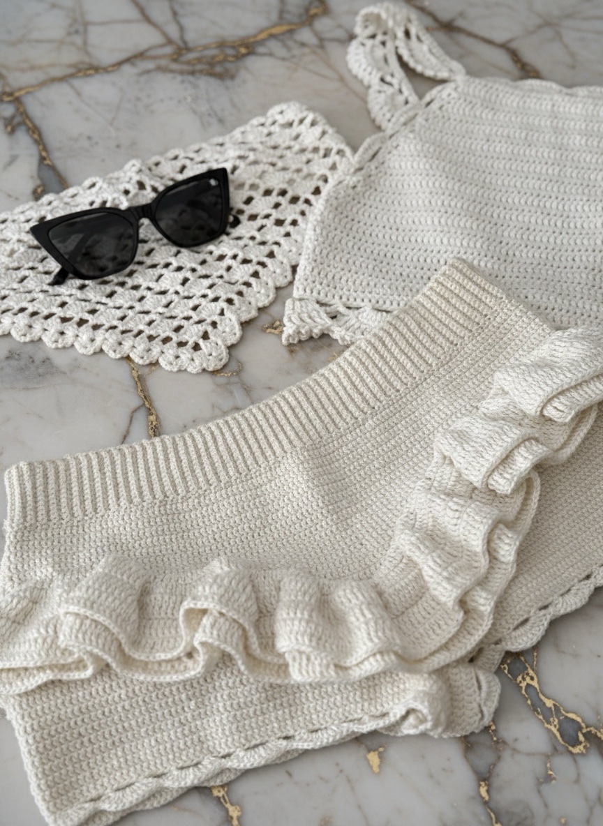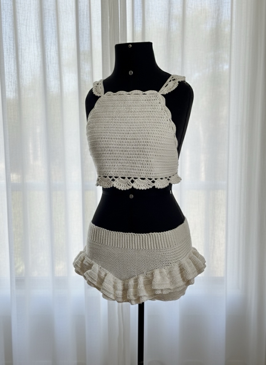 Shortinho feito artesanalmente em crochê.
